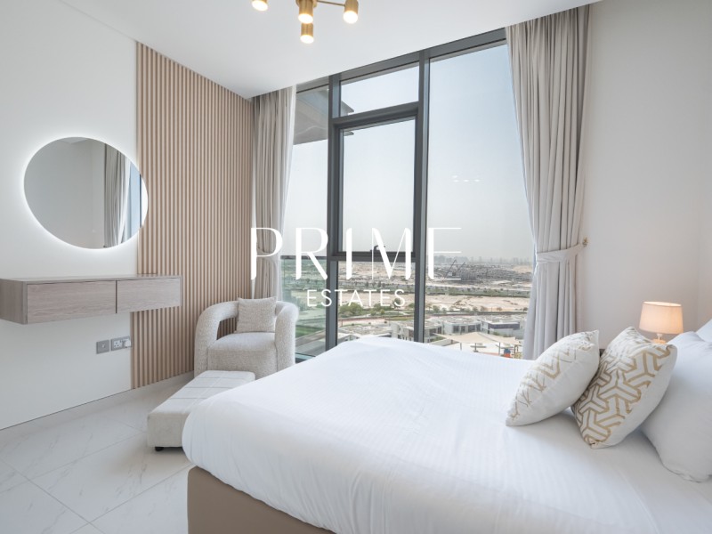 Experience elevated living in this high-floor corner one-bedroom apartment at Residences 13, District One. Designed with a bright and airy layout, the home showcases sweeping views of Meydan and features an ensuite bedroom with refined finishes throughout. Nestled within one of Dubai’s most prestigious communities, it provides the ideal balance of elegance, privacy, and urban convenience.