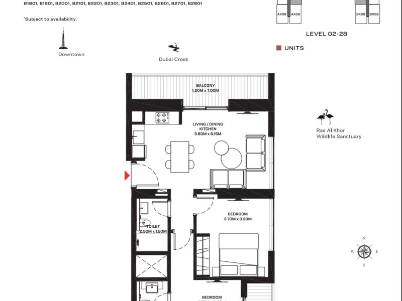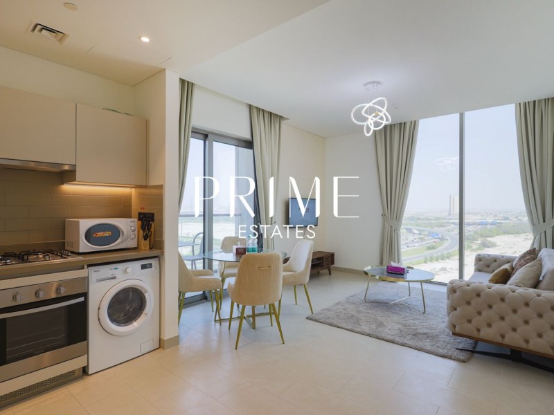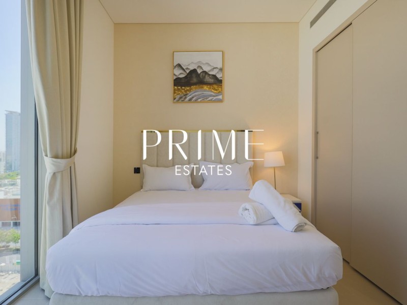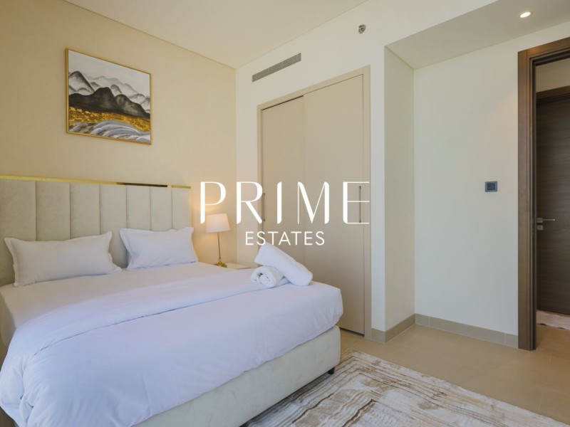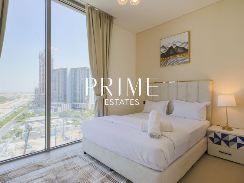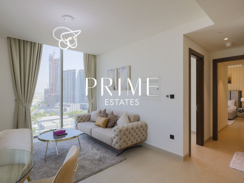 Experience modern luxury at Sobha Creek Vistas. This fully furnished 2-bedroom, 2-bathroom corner unit apartment offers stunning views of the creek, Burj Khalifa, and Crystal Lagoon, perfect for those who love city living with a touch of serenity.
